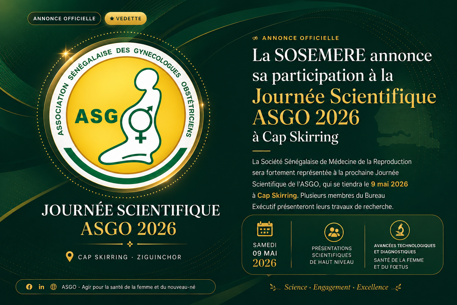 Notre mission est triple : former, chercher, accompagner. Le bureau 2025-2027 s'engage à faire de la SOSEMERE un acteur incontournable de la santé reproductive au Sénégal et en Afrique de l'Ouest.